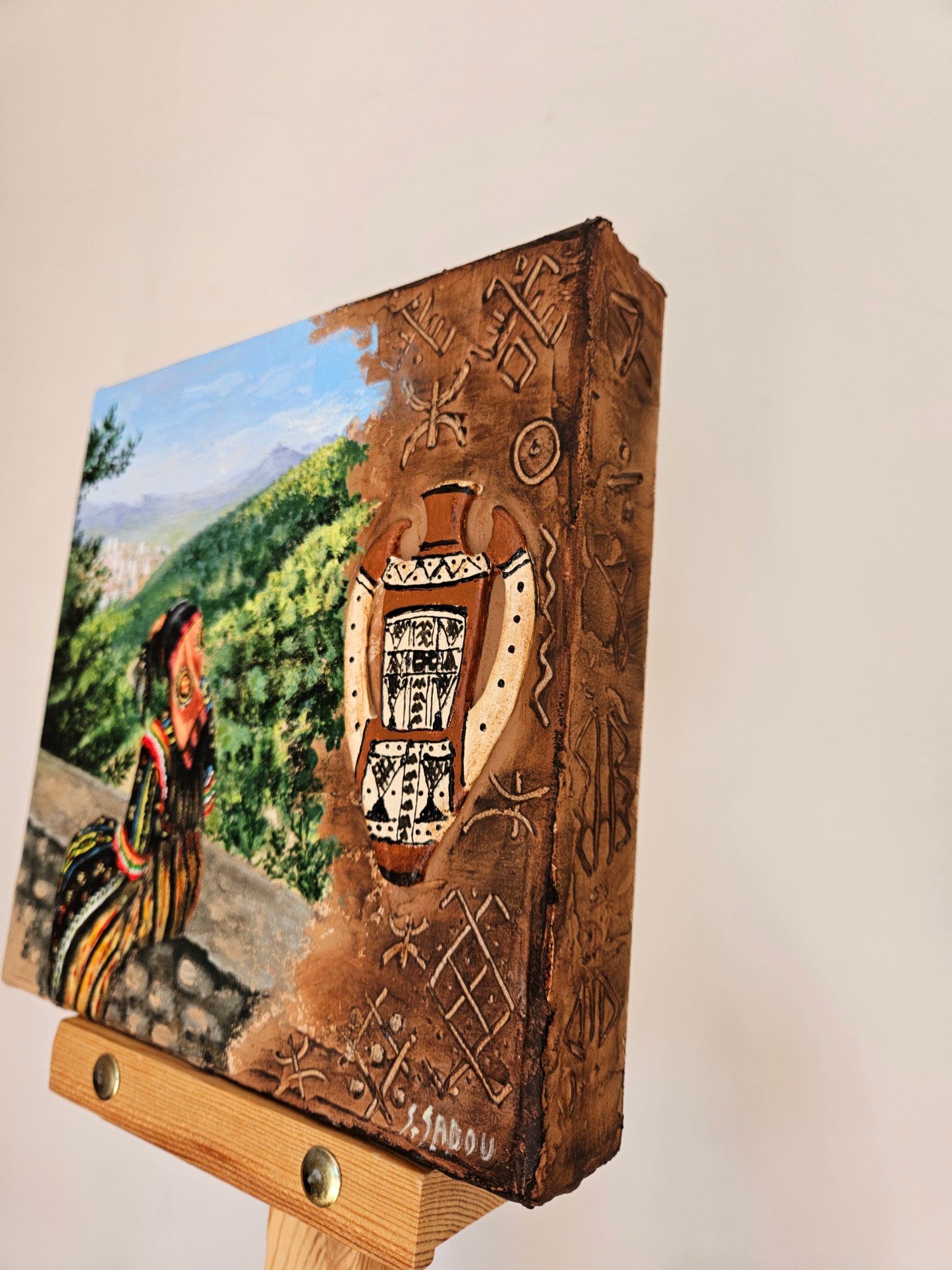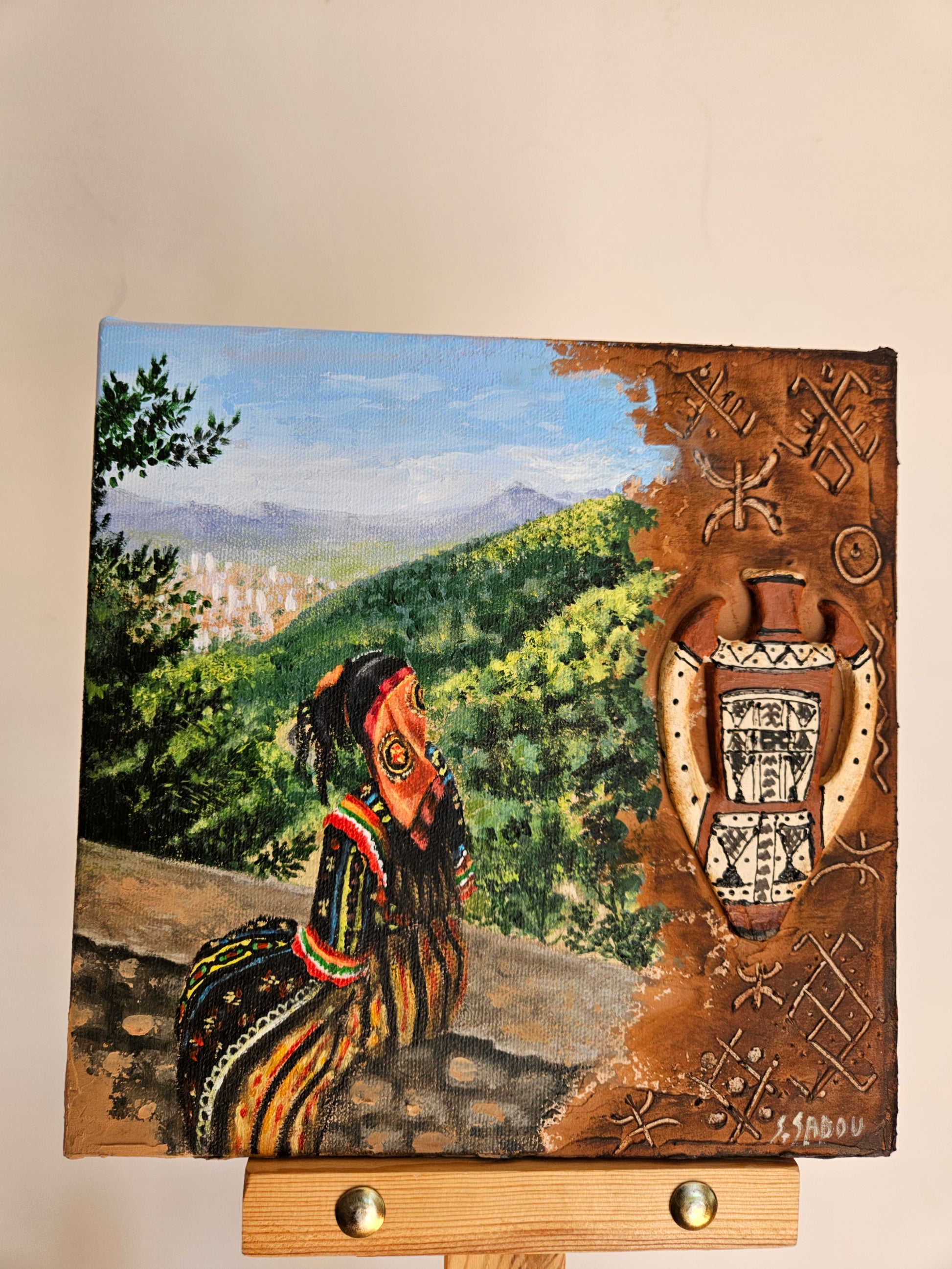 Every detail, from the fine pattern of the dress to the natural shades of the olive tree and the mountains, captures the essence of Kabyle culture and brings a touch of tradition and elegance to your home. This work is ideal for art lovers, those passionate about North African culture, or simply for those who want to add an authentic and warm accent to their decor.