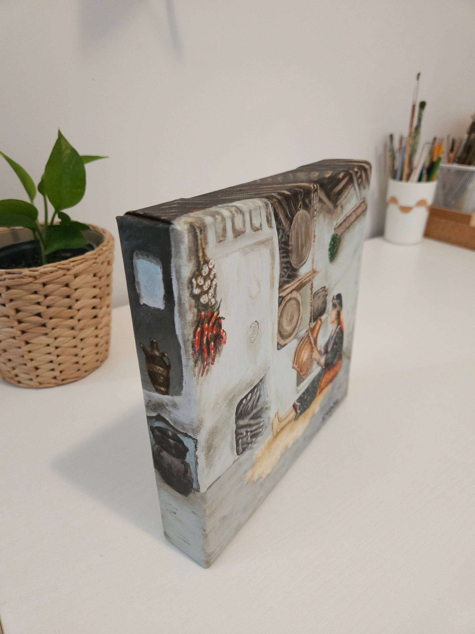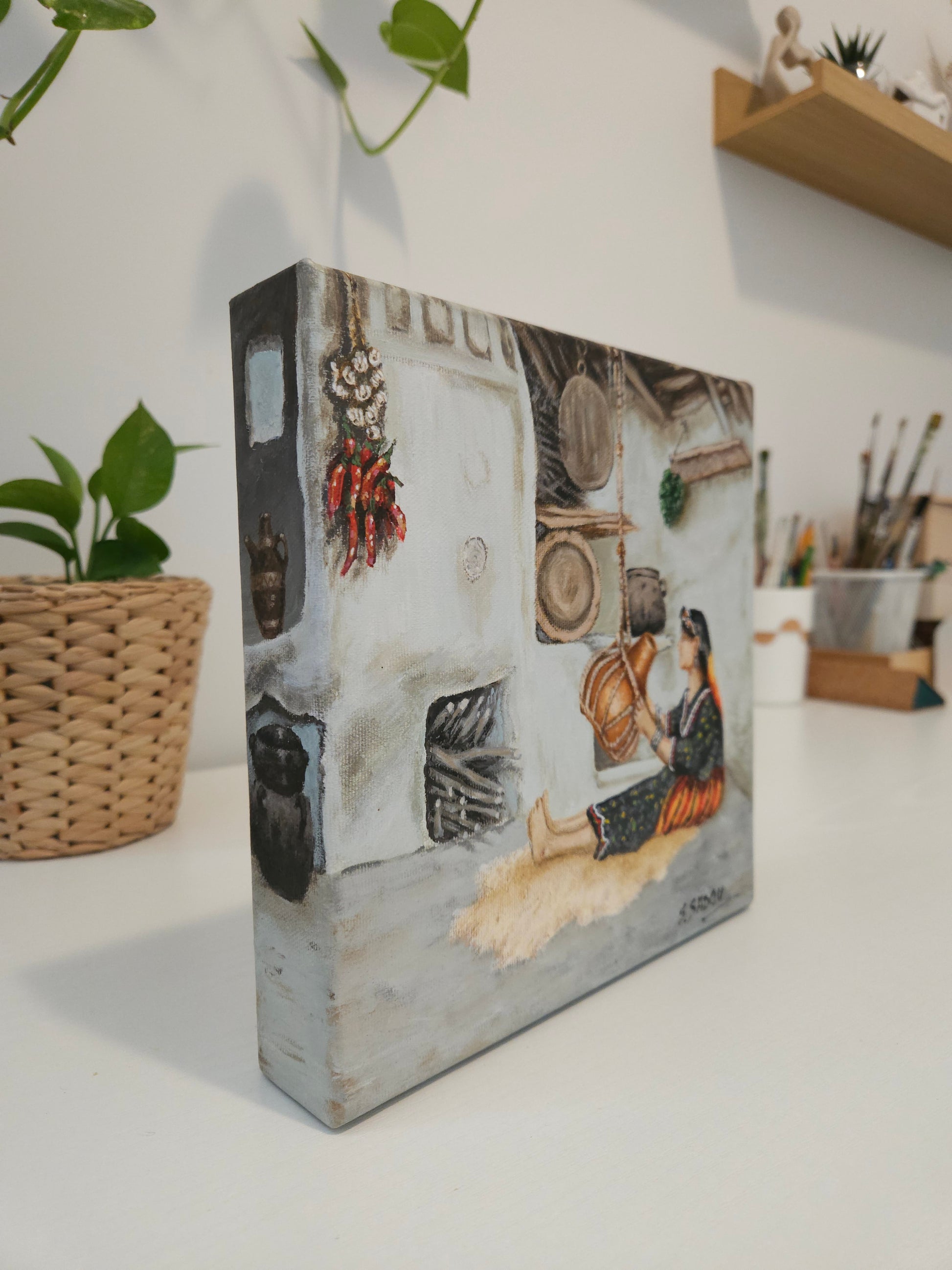 - Type: Peinture sur Toile 100% Coton, agrafée sur armature en bois