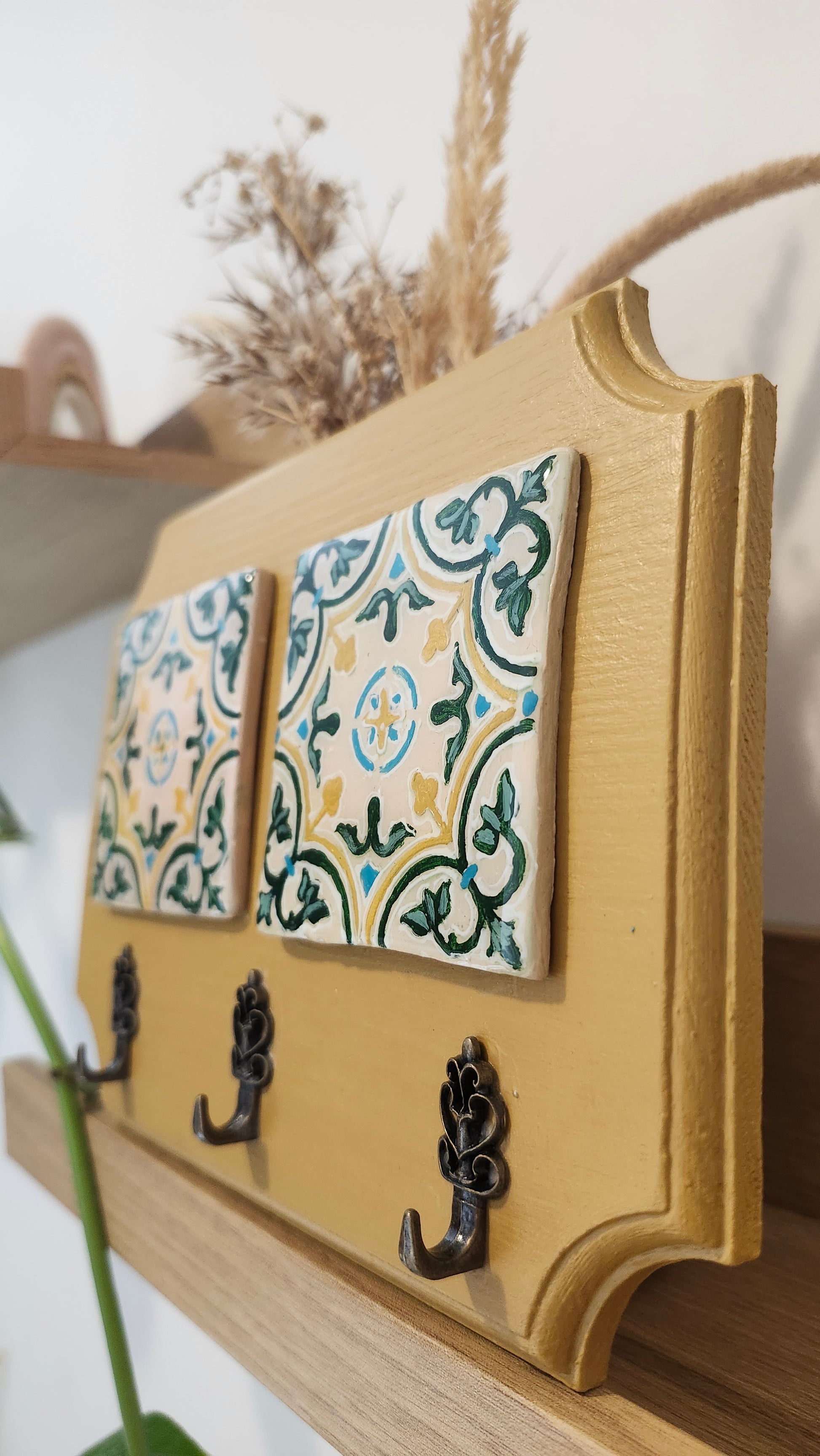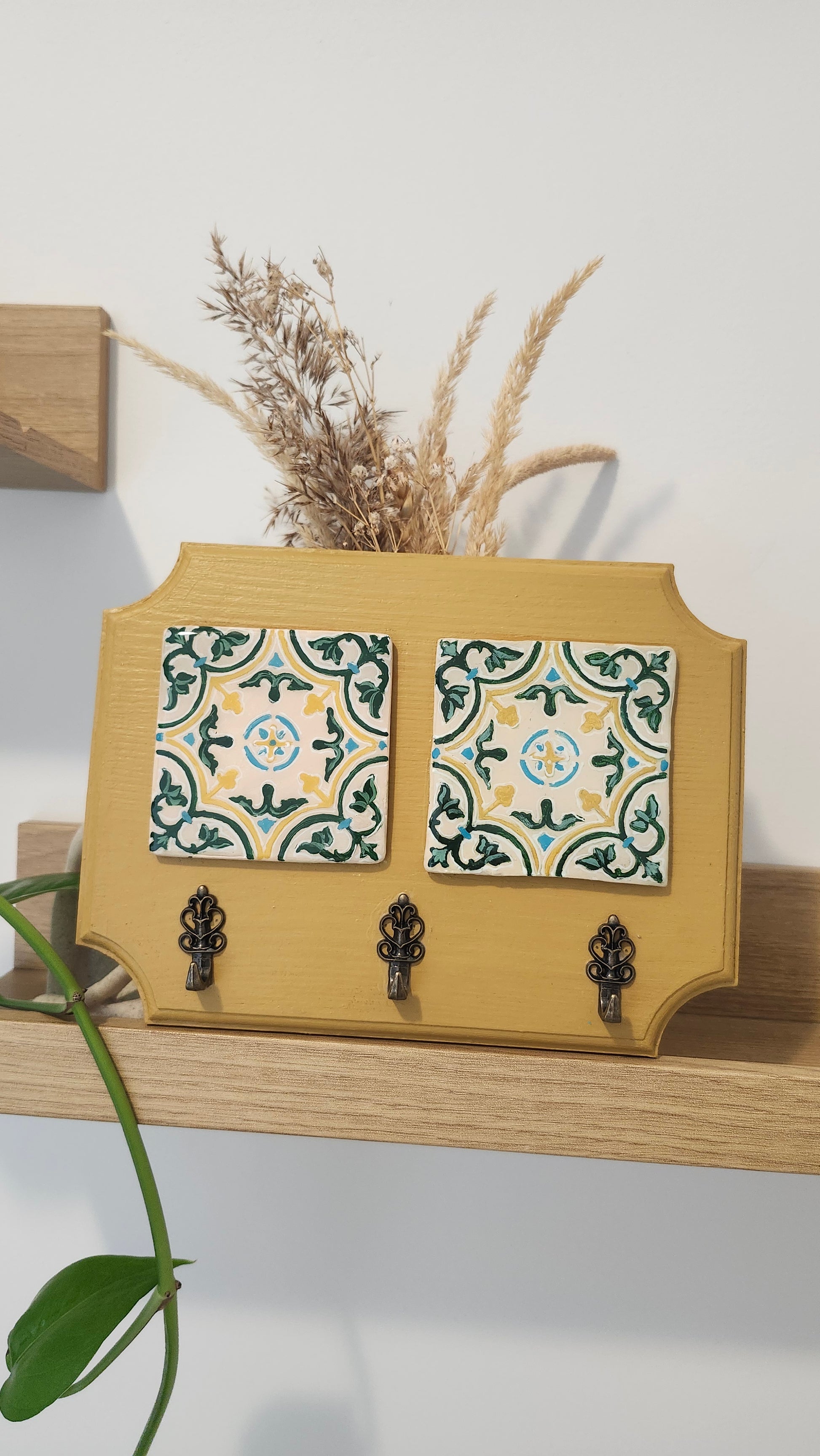 Apportez une touche artisanale et authentique à votre intérieur avec cet accroche-clés mural décoratif, entièrement fait à la main.